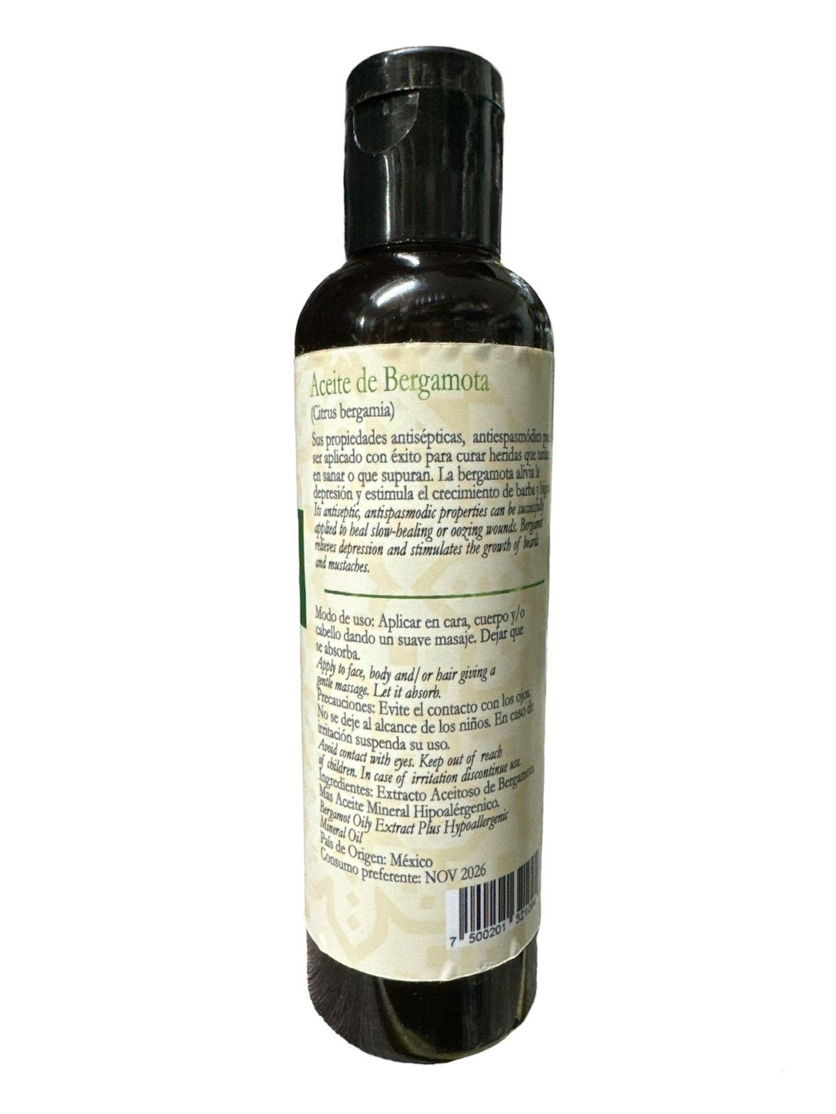 El aceite de bergamota equilibra la piel grasa, promueve el crecimiento del cabello, regula la producción de grasa capilar, y estimula el flujo sanguíneo en la piel y el cuero cabelludo.