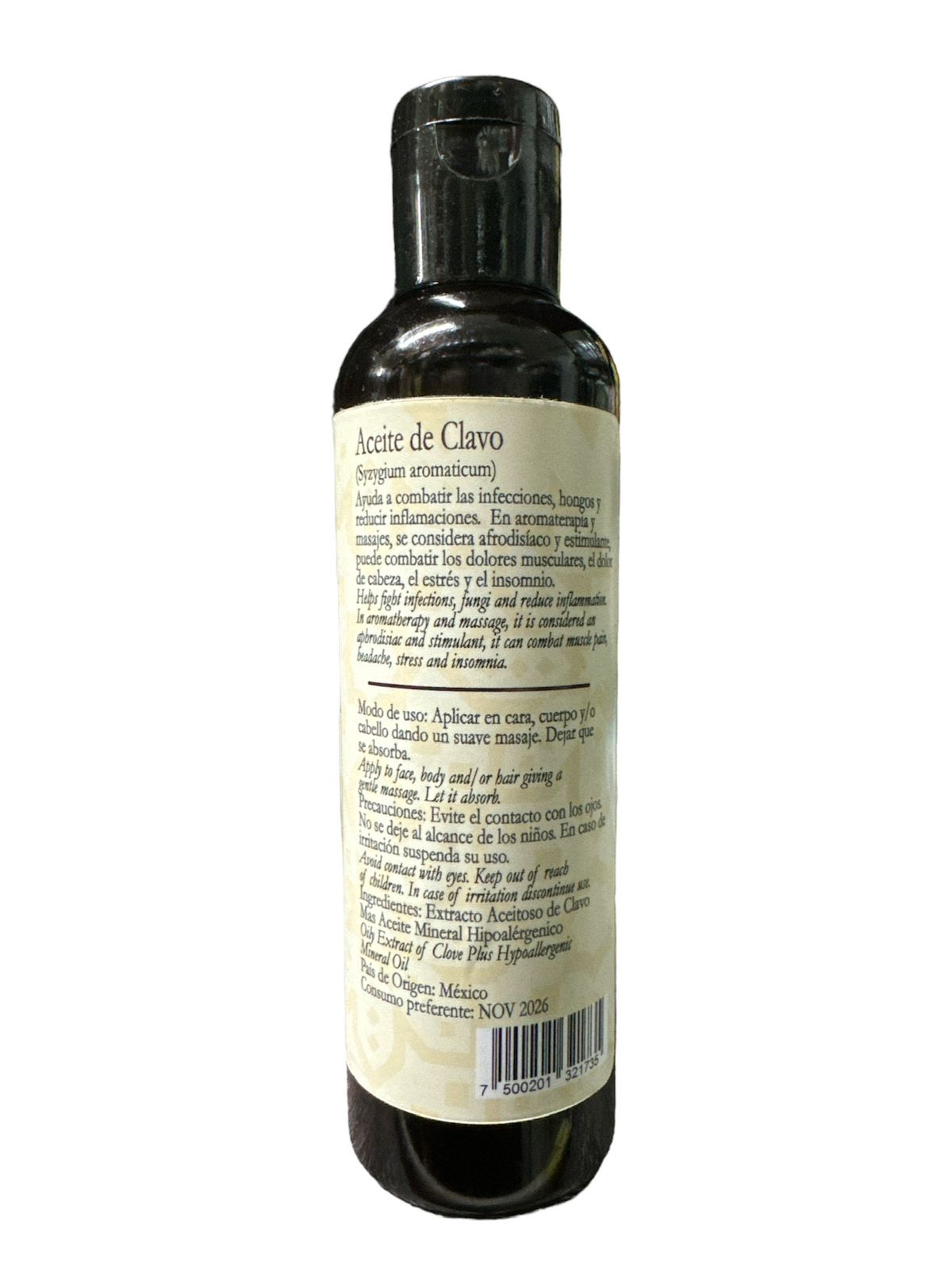 - El aceite de clavo tiene propiedades antiinflamatorias, analgésicas, antibacterianas, antimicrobianas y descongestionantes.