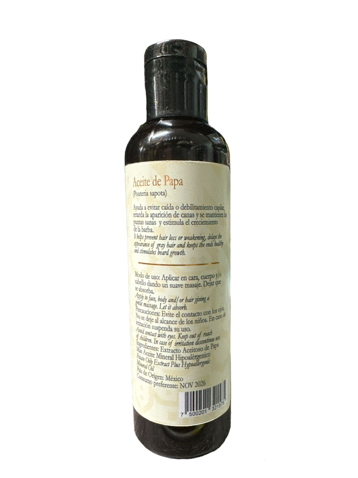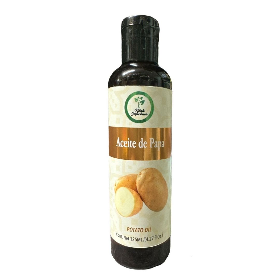 El aceite de papa reduce inflamación, irritación, picazón y enrojecimiento en la piel, aclara manchas, difumina la apariencia de las ojeras, controla el exceso de grasa en la piel, estimula el crecimiento del cabello y promueve la producción de colágeno.